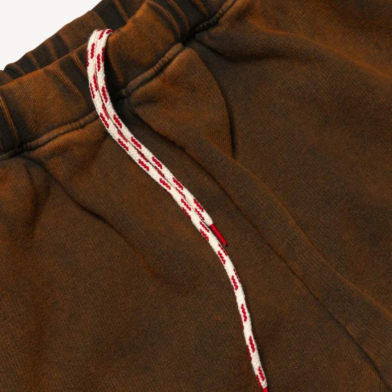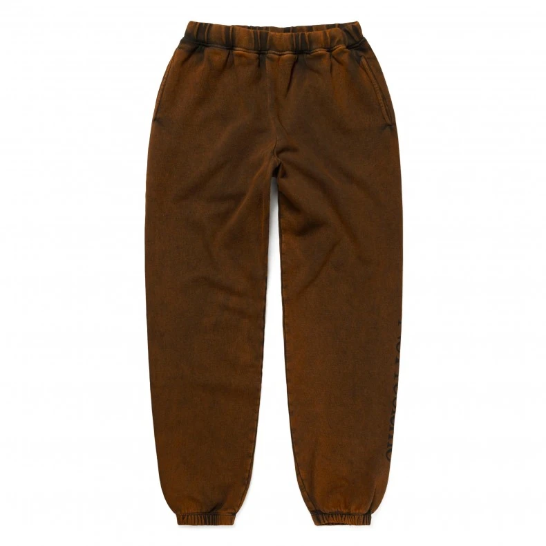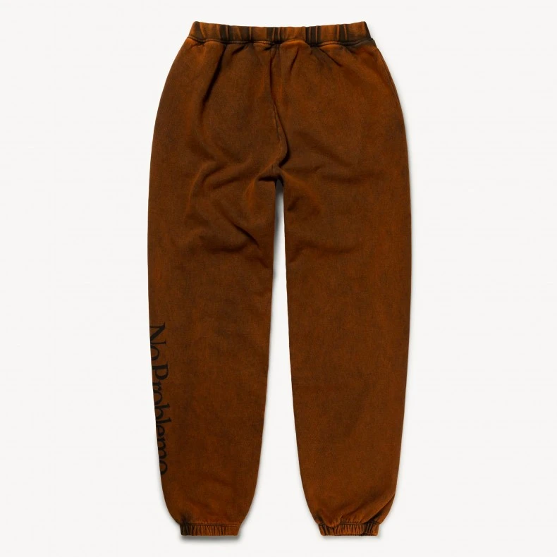 Unisex Loose fit Aries Acid No Problemo Sweatpant in an orange acid washed heavy brushed-back jersey fleece, with elastic rib waist and leg openings, and featuring a black screen-printed logo on the left leg.