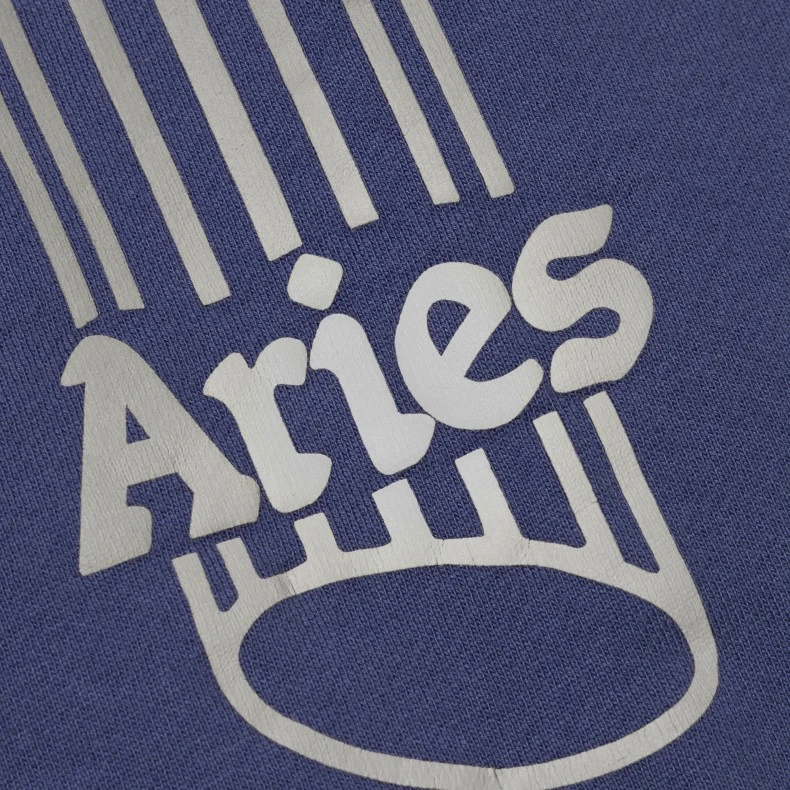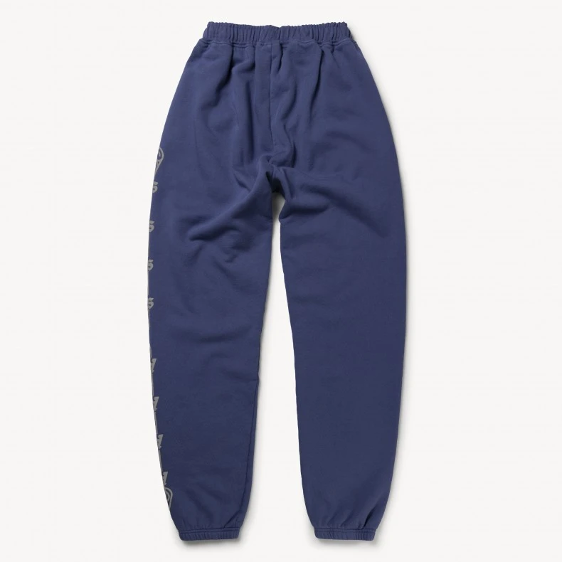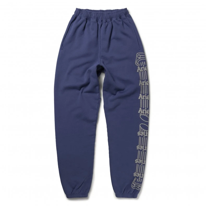 Unisex Regular fit Aries Column Sweatpant in a Navy Blue cotton fleece back jersey, with elastic waist and leg openings, and featuring a reflective column graphic down the left leg.