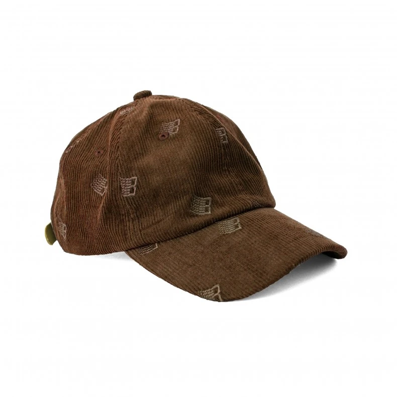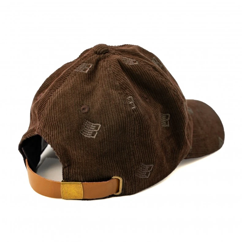 Bronze 56K All Over Embroidered Cap in Brown 100% cotton corduroy with leather strap and allover B logo embroidery.