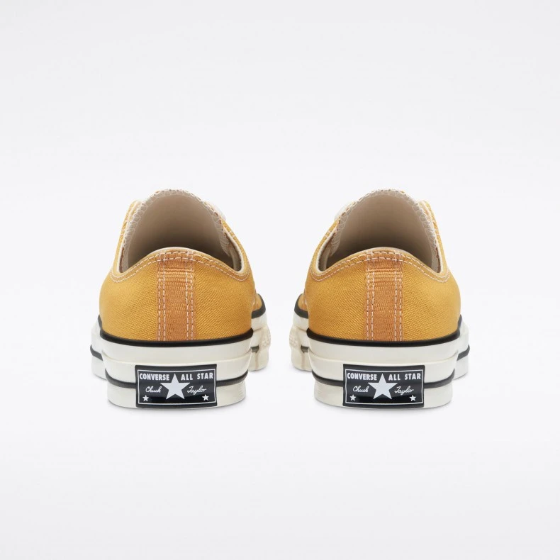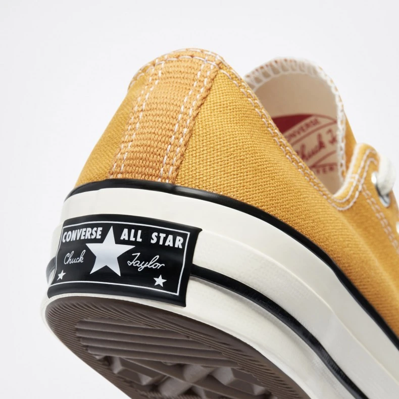 Converse Chuck Taylor All Star 70 Ox in Sunflower yellow. Produced with a canvas upper, rubber toe cap, metal eyelets and a Converse 70 inner sole, featuring a white rubber Converse 70 sole with black sidewall stripes and a black heel tab with an off white All Star logo.