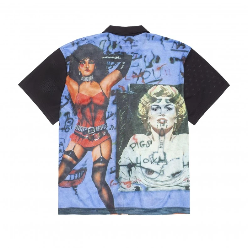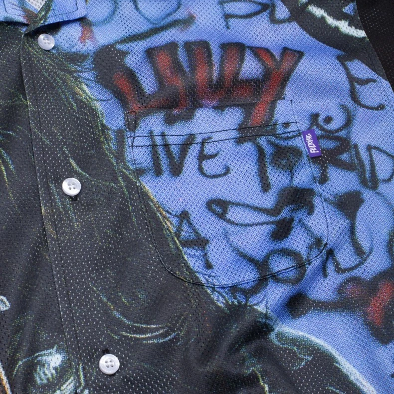 Regular fit FA Paris Girls Mesh Club Short Sleeved Shirt features a spread collar, button front closure, and a singular chest pocket, completed with all-over print nude women & graffiti artwork.
