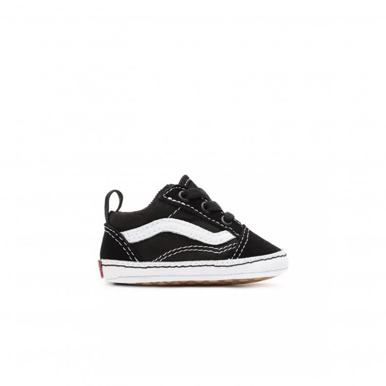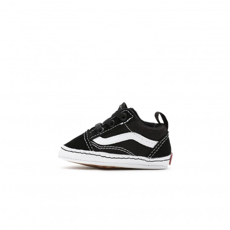 The Vans Old Skool Crib, redesigned for a perfect fit in the style of the original Old Skool, features sturdy canvas and suede uppers, and heel pulls for an easy on-and-off fit. A new print on the outsole mimics the iconic Vans waffle sole, and the addition of a Vans heel scab completes the classic look.