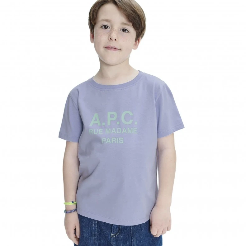 Lilac T-shirt with sky blue A.P.C. logo in organic cotton.