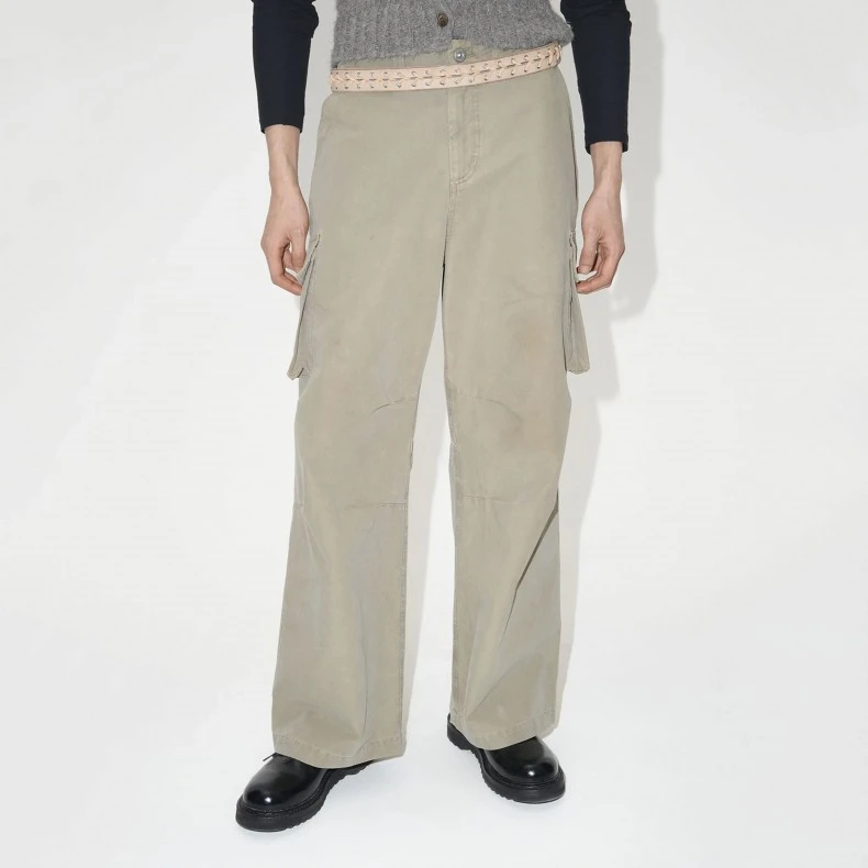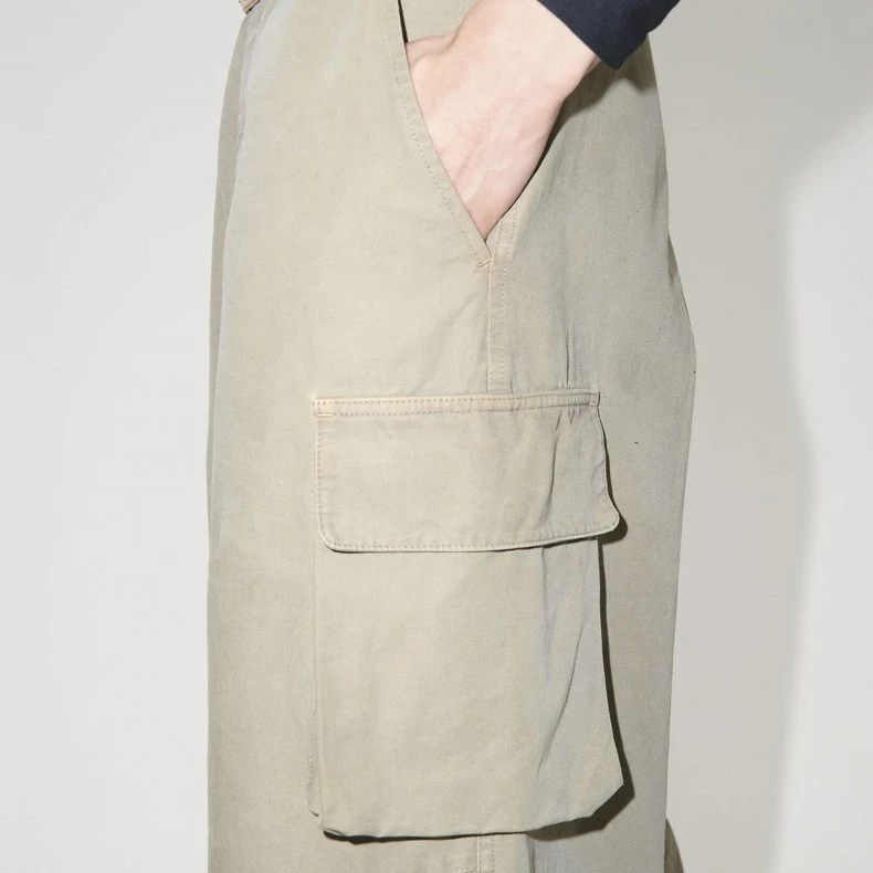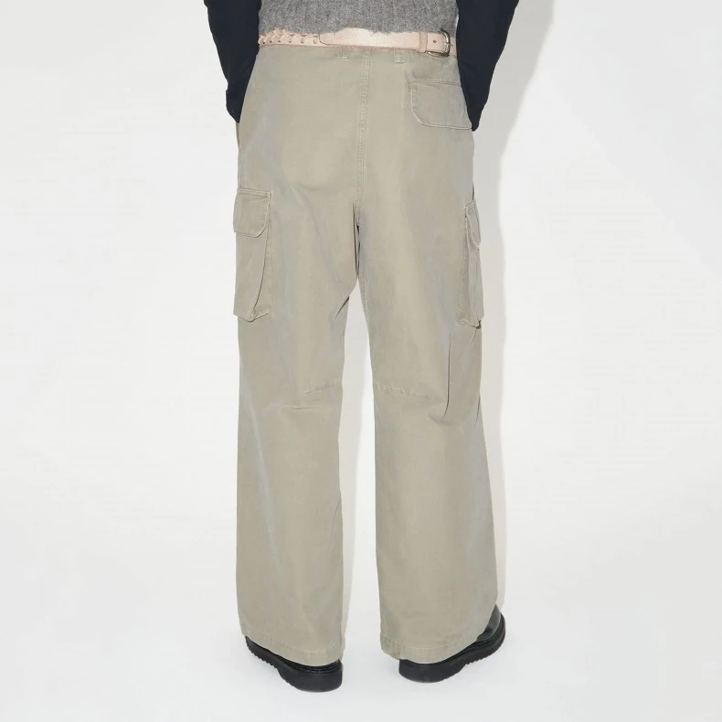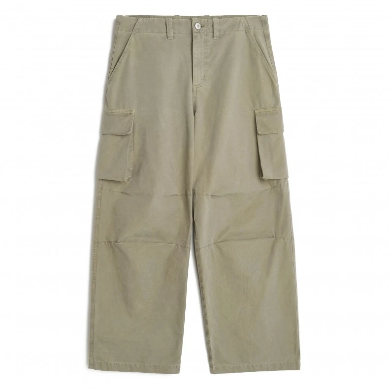 The Mount Cargo in Peafowl Canvas. Produced in an Italian canvas fabric, the men’s Mount Cargo pants have a relaxed, straight cut and feature cargo side pockets, darted knees, and a single back pocket.