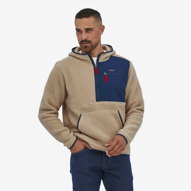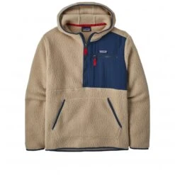 This easy-wearing hooded pullover in an oar tan light beige with red and navy bblue accents combined with a fresh look provides nice warmth and is equally at home in mountain or city life. Fair Trade Certifiedâ„¢ sewn.