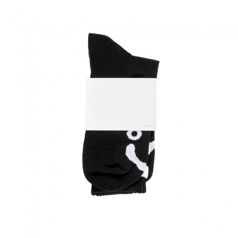 Polar brings back the Happy Sad Classic Socks for this season in Black. Featuring a ribbed knit cotton-rich blend with white contrasting stripes, a black double layer heel, sole & toe, and contrasting white happy-sad detailing before the toe.
