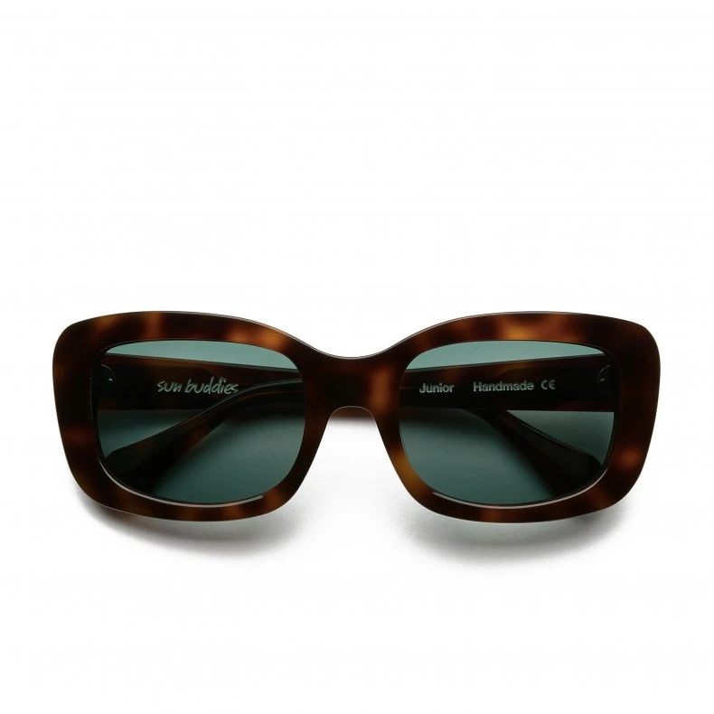 Original tortoise patterned 70’s inspired square shaped frame in a brown and yellow original tortoise colorway, handmade of Italian acetate. Grey Carl Zeiss lenses with 100% UV protection and a seven bar hinge with two visible rivets on the temple. Comes in a glossy paperboard box and a faux leather case. Cleaning cloth included.