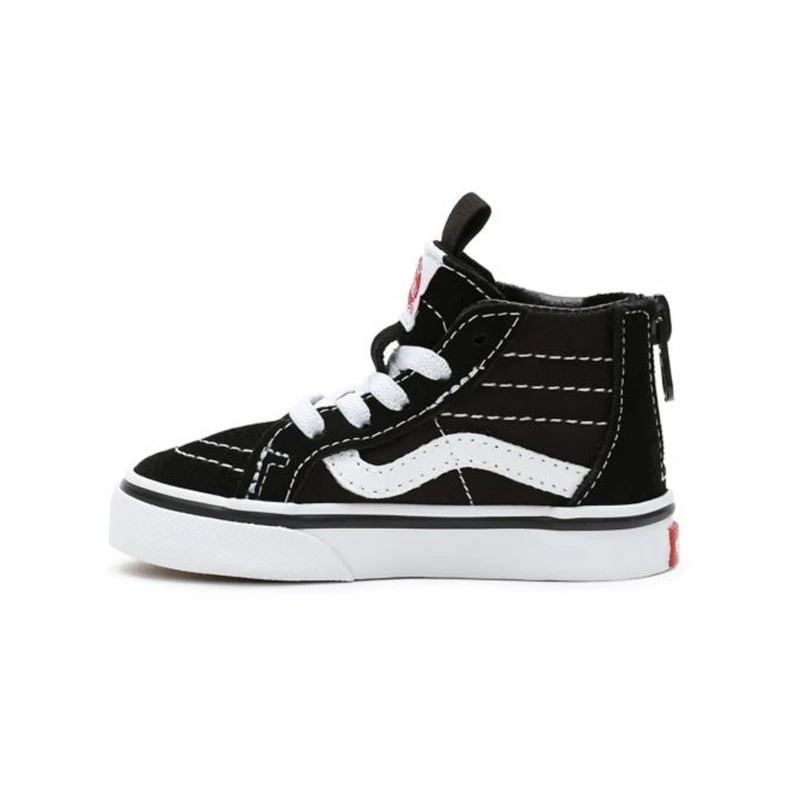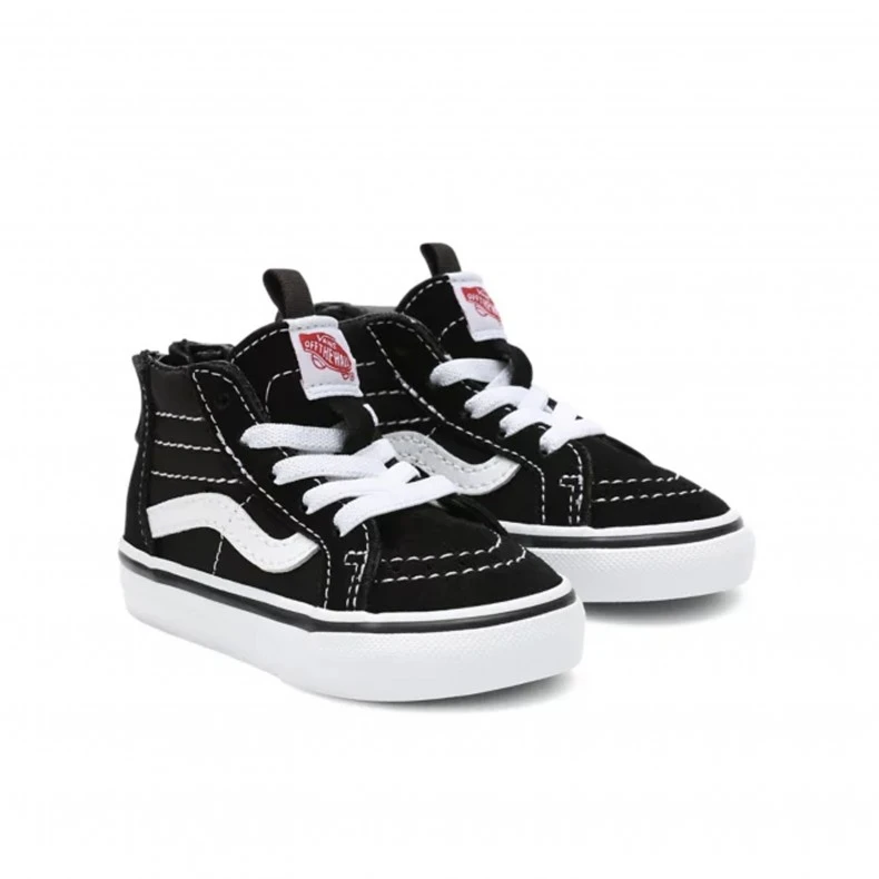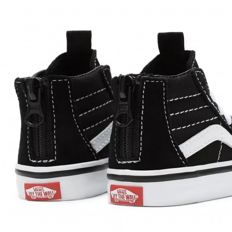 The Toddler Sk8-Hi Zip combines the legendary Vans lace-up high top with a zipper entry at the heel, sturdy canvas and suede uppers, padded collars for support and flexibility, and signature rubber waffle outsoles.
