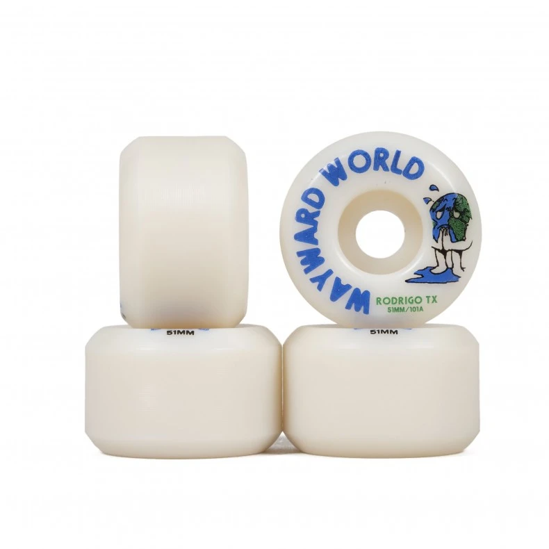 51mm Wayward Wheel Co. Rodrigo TX Funnel Pro Skateboard Wheels in a 101a quality material with a Rodrigo TX pro graphic.