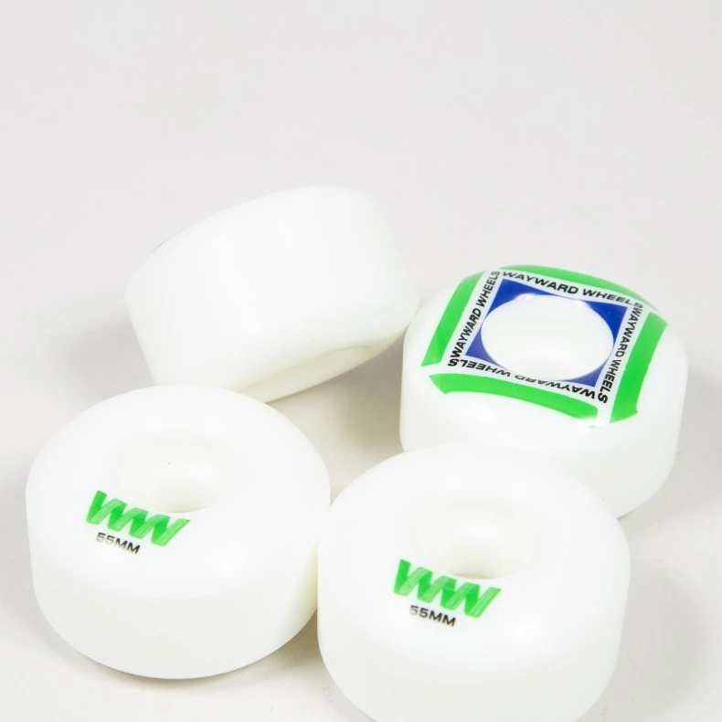 55mm Wayward Wheel Co. Waypoint Skateboard Wheels in a 101a quality material with a white/green Waypoint team graphic.