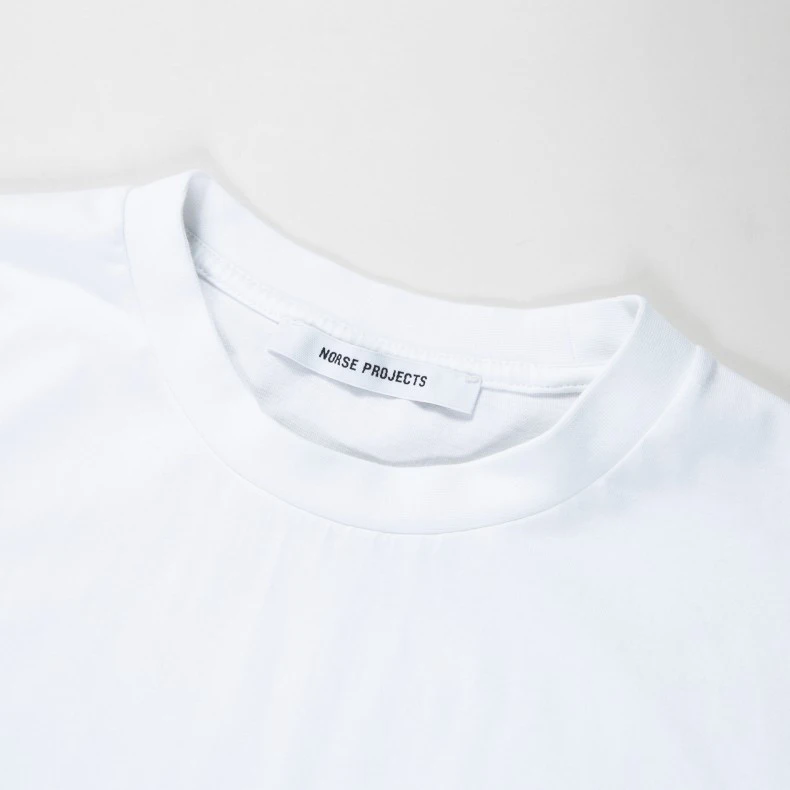 Women’s straight fit, Norse Projects Gro Standard Cotton T-Shirt, in white organic cotton, with a ribbed neck, set in sleeves and a straight hem.