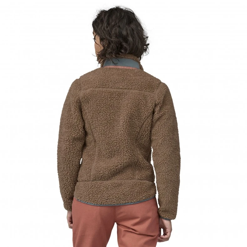 Women’s Patagonia Classic Retro-X Fleece Jacket in Pampas Tan w/Nouveau Green. Windproof, warm and with a feminine cut, Patagonia’s Retro-X® Jacket is a favourite fleece made with 100% polyester (50% recycled). It has a windproof barrier bonded between a cosy 50% recycled polyester fleece exterior and a moisture-wicking, brushed-polyester mesh lining. Full-length front zip with internal wind flap to keep out chilly gusts. The vertical zippered chest pocket is made of nylon; zippered handwarmers lined with brushed-polyester mesh. Hip length. Fair Trade Certifiedâ„¢ sewn.