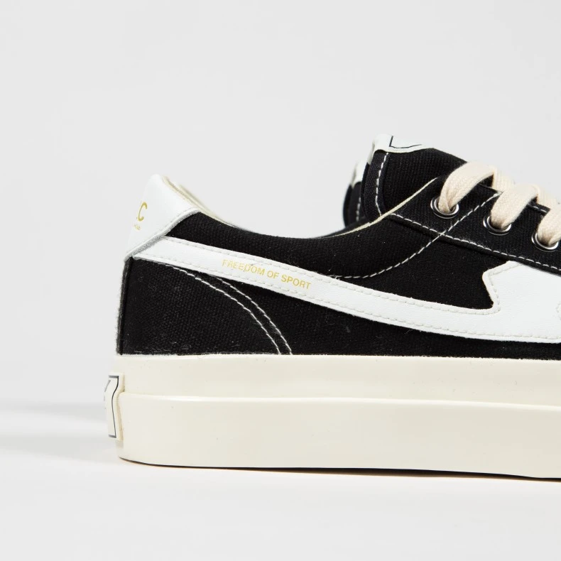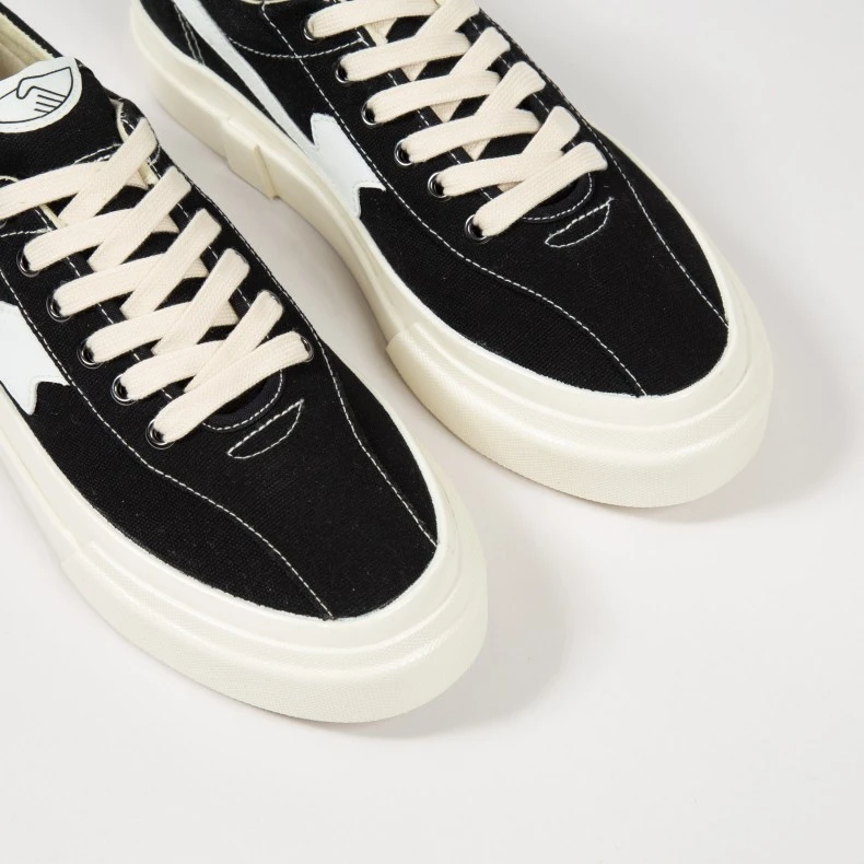 Constructed using a combination of traditional and bygone methods, the SWC Dellow sneaker features a deconstructed upper, premium cushioned flexible sole and a concealed siped tread for improved grip. Its cotton drill canvas, durable vulcanised rubber sole and high-wall foxings make it a versatile, reliable sneaker featuring an ‘S-STRIKE’ trailing ‘S’ identifier panel on the quarters and heel spoiler.
