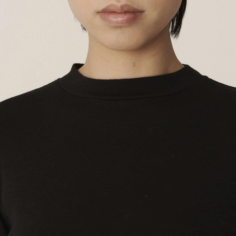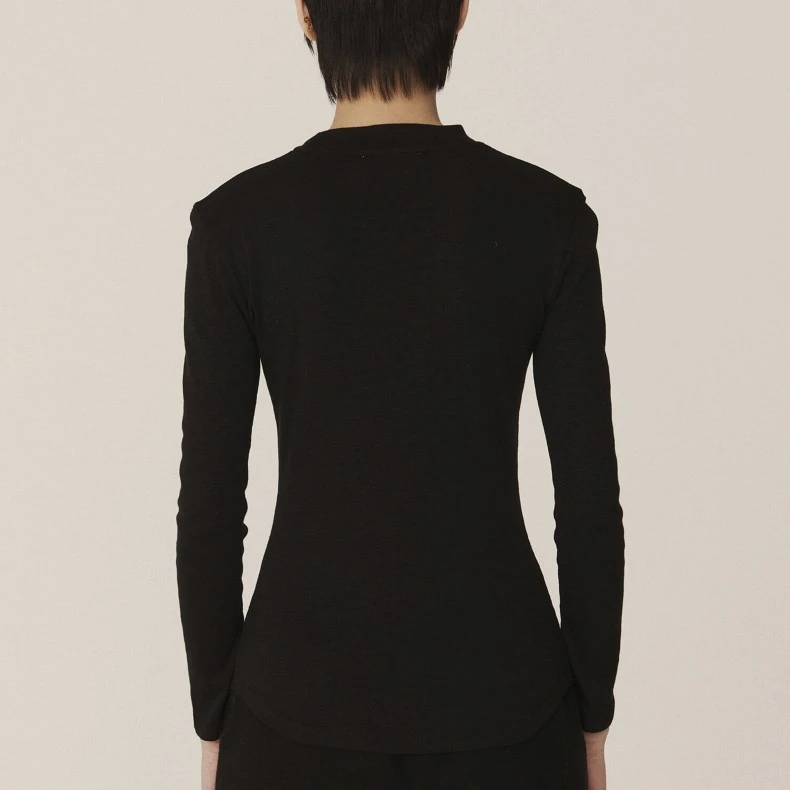 Fitted slub cotton long sleeve with a curved hem and semi-high neck.